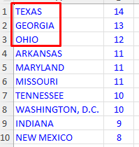 I predicted that a double would hit TEXAS a few weeks ago because no double hit Texas the previous week – but that double did NOT hit the following week in TX. The lesson here is not to target the hottest state for doubles (TX) – but instead, target the top 3 states: Texas, Georgia, and Ohio. One of these states is bound to get a hit almost every week…hopefully on a Sunday, Monday, or Tuesday. For example, Georgia got a hit last week and Ohio got two hits, and one of these hits was last Sunday. So the Top 3 Rule is this: Never target (or focus on) the hottest state. Instead, target (or play) the top 3 states where DOUBLES hit. Right now those states are Texas, Georgia, and Ohio. The image below is from the Excel sheet posted today HERE.