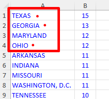 3-Look at the top of the spreadsheet. Use the Top 3 States.