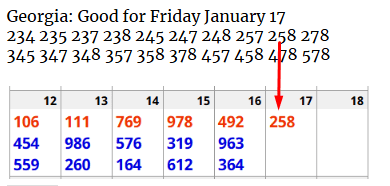 PICK 3 Numbers for FRIDAY January 17