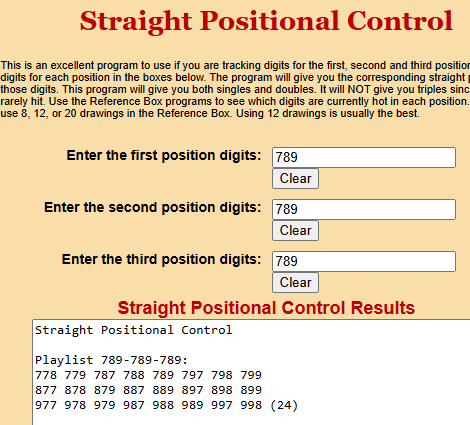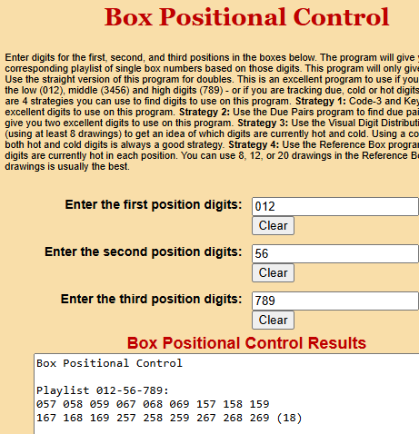 Code 134 (BOX): Make sure you use the BOX Positional Control program for BOX numbers. This program only gives you SINGLES.