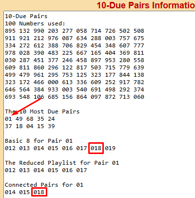 Something to keep in mind here: the most due pair was 01 and 018 was a connected pair number (pairs 01 and 18).