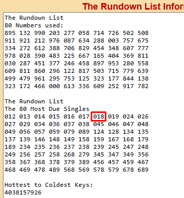 Something to keep in mind here: the most due pair was 01 and 018 was a connected pair number (pairs 01 and 18).