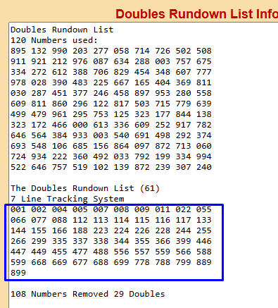 A double did not hit, but if it did, it most likely would have been one of these 5 numbers.
