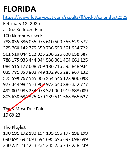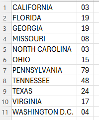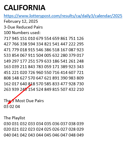 Below are the due pairs for 11 states.