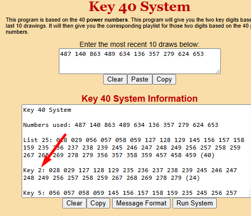 The program will give you TWO keys; use the smaller of the two digits. In this example, the program gives you keys 2 and 5; use the smaller of the two digits: 2.