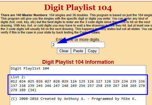 As you can see, the program gives you a playlist of 34 numbers.