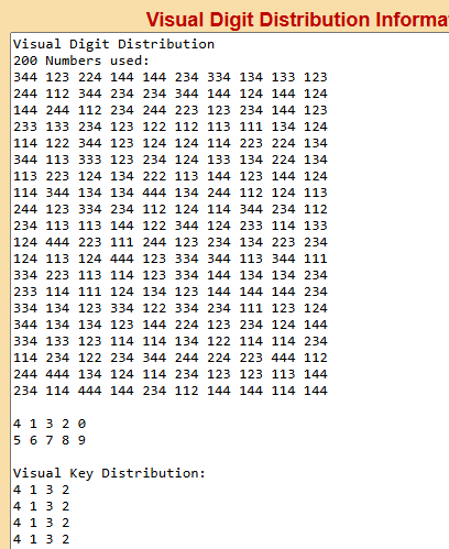 You can use the codes to find out how the game “works” in Georgia. For example, the most dominant position is 4. (We get this information by entering all the codes into the VISUAL DISTRIBUTION program; it tells us which digit hits the most times).