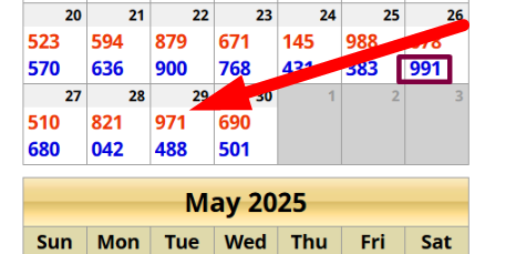IMPORTANT: Do NOT start from the last number that hit (768 in the example below). Go back a week to 10 days because you want to see if any of the numbers predicted actually hit. I will start from 991 (April 26). In other words, you want to TEST out the response by seeing what actually hit soon after. If any of the numbers predicted hit in the next 1 to 10 drawings, the prompt (question asked and strategy used) is good.