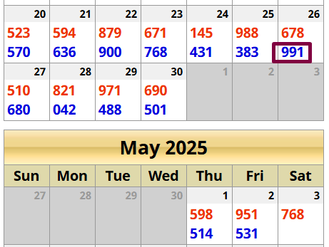 The most recent number is 991.