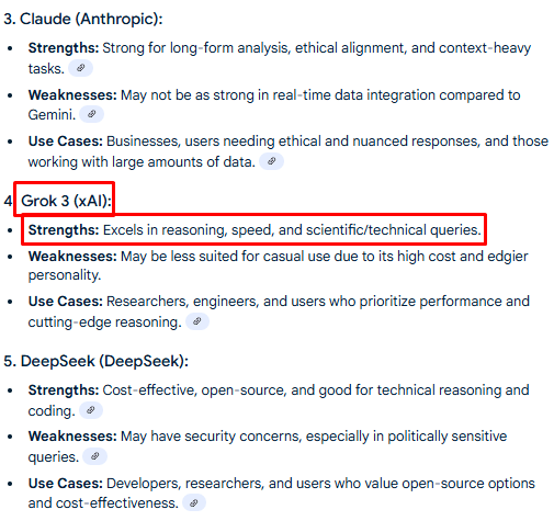 ChatGPT is good for general stuff….but Grok-3 (and Deepseek) are better for numbers, technical analysis, etc.