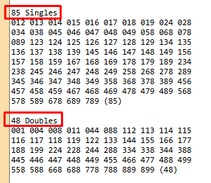 You can find the total list of singles and doubles at the bottom of the output.