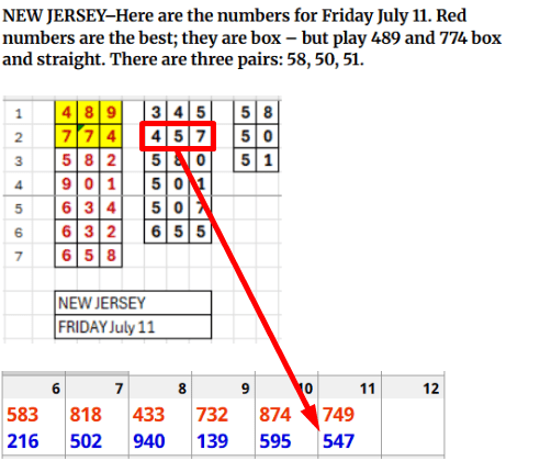New Jersey Numbers for Saturday July 12