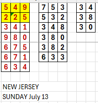 New Jersey Numbers for Sunday July 13