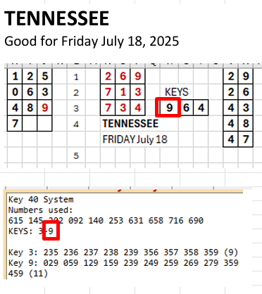 Numbers posted for FRIDAY July 18 HERE. Look at the bottom of the page. I added the (modified) output of the Key Digit program. You are looking for matching digits. For example, the sheet for NEW JERSEY gives you keys 0, 8, and 4….and the two keys are 4 and 8. We have a match here. Maybe pair 48 will hit today? Maybe.