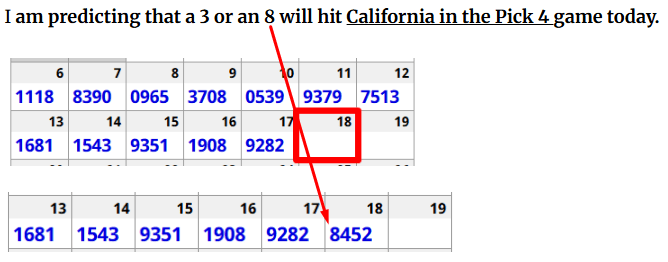 CALIFORNIA Pick 4–Key 3 or 8