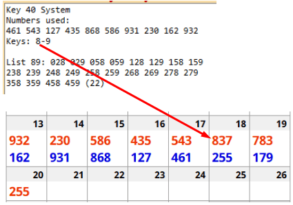 Do I have any evidence that this key system works in Florida?–YES. The lowest key on Thursday night (after 461) was 8. It hit the next day in 837.
