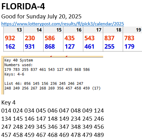 I will be updating the format of the daily report I am posting HERE. The new report will be based on keys (instead of codes) because the keys hit right away. For example…the report for FLORIDA for TODAY will look like this: