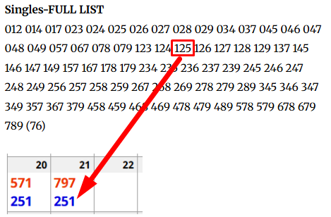 SINGLES–REDUCED to 54 Numbers using the Rundown List.