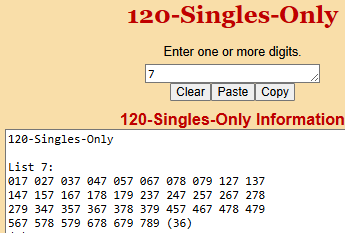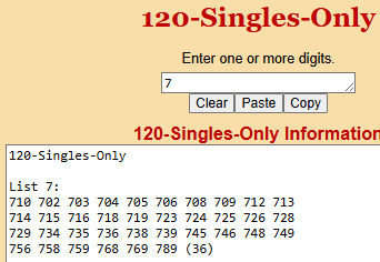 Right now if you enter 7 into the 120 Singles program, it will give you this: