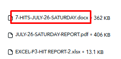 I just put up a preliminary Hit Report for TODAY (Saturday July 26)…so far, 7 hits today from the report I posted last night HERE.