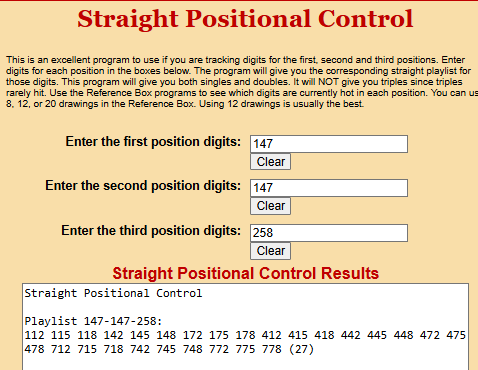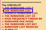 COPY all the numbers. Paste them onto the CONSOLIDATION program to remove doubles. I reduced the lists above to 27 singles and 27 doubles for CALIFORNIA. You can reduce the 27 singles with the RUNDOWN list (copy the 27 singles and the current Rundown list of 80 singles into the Group Matching program: the 2-way list is the Reduced List).