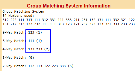 111 is an interesting code because it reduces down to just 10 numbers: One single, 6 doubles, and 3 triples!