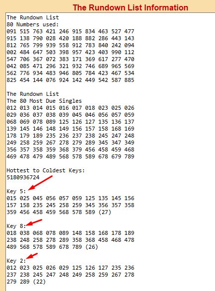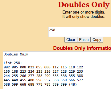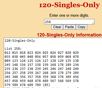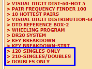 To get the complete list of SINGLES and DOUBLES for any set of digits, use these programs.
