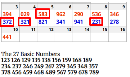 Let’s assume that the 27 Basic numbers were played in FLORIDA last week. 27 numbers times 14 drawings is $378 spent. However, there were 4 hits X $150 (online) = $600….so the profit was $222. See how many of the 27 numbers hit your state last week.