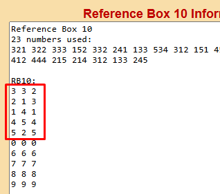 Below are the last 23 codes I collected. I copied the codes into the Reference Box (output at the bottom). Notice the 2nd position….2 is at the bottom in the Reference Box (it hit twice in the 2nd position in codes 321 and 322).