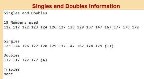 Copy the 36 numbers into the Singles and Doubles program to get the breakdown:
