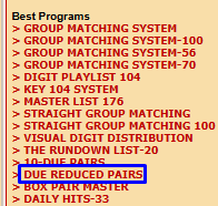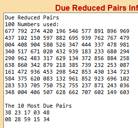 The theory is this: these pairs should hit FASTER then the regular 10 due pairs (based on 45 pairs) because these due pairs are based on a shorter list of 20 pairs (NOTE: This program currently requires that you enter the last 100 numbers – but soon it will ask you for just the last 60).