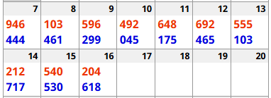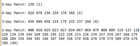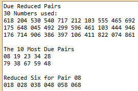 Below is the output from the 200 numbers copied onto the Group matching program (100 from Due Reduced and 100 from 10-Due Pairs programs).