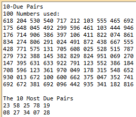 If you copy the 100 numbers from the 10 pairs above and paste then into the Group matching program, you will get these: