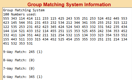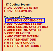 For the 555 coding system program, you want to find the TWO hottest box codes: Copy the straight codes into the Group Matching program to turn straight codes into box codes. Use the last 30 to 50 drawings. You can use more drawings for confirmation (sometimes the hottest code in the last 100 drawings is the same as the hottest code in the last 30 or 40 drawings).