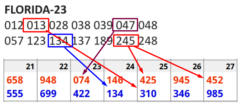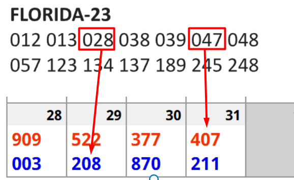 Below are the first two lines of numbers for FLORIDA (14 numbers: the full list has 23 hot numbers for Florida HERE). That’s 2 hits in 4 days.