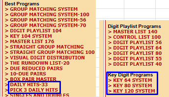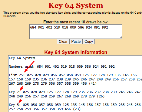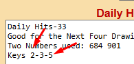 As you can see, I like keys 2 and 5 for today, Friday JAN 16. This means only playing numbers that have a 2 or a 5 today (or both digits).