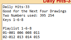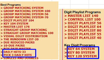 Whenever there is a match between the keys these two programs give you, there is an excellent chance that one of the TWO keys will hit in the next TWO drawings.