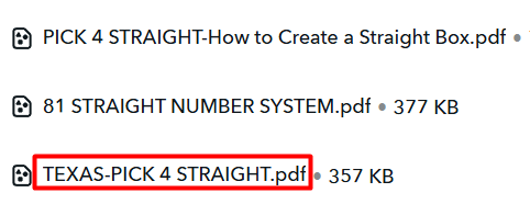 Here is the STRAIGHT BOX for the TEXAS PICK 4 Game: