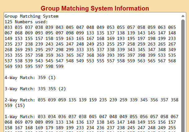 2-Way Match: 035 039 059 135 139 159 235 239 259 339 345 356 357 358 559 (15)