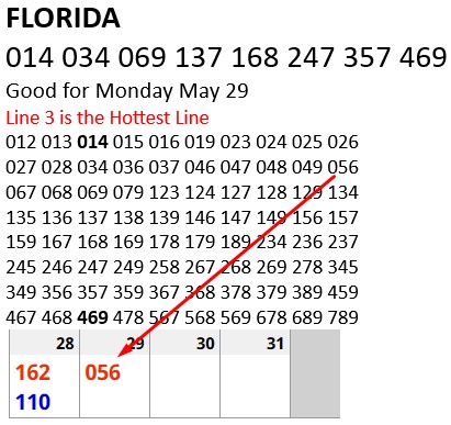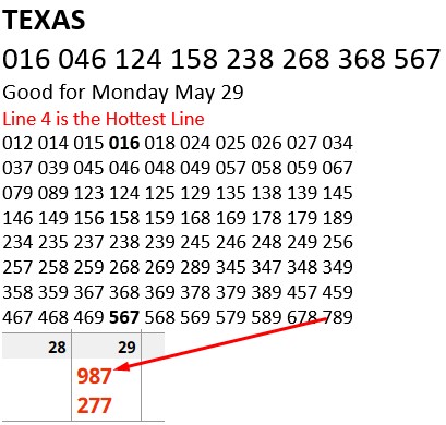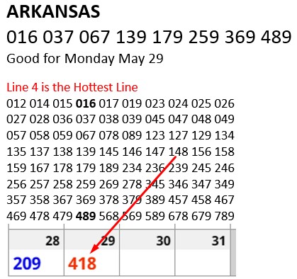 This strategy is not for everyone…and it definitely requires that you play online at BAS. Here is goes: if you play all 80 numbers for the midday drawing (the first drawing of the day), you will get a hit on MOST states. I will get a total count tonight – but below are just some of the hits so far TODAY (Monday May 29). The math looks like this: 0.25 X 80 Numbers = $20. One Hit = $37.50. Profit: $17.50. This strategy will require an investment of $600 ($20 X 30 states). At least 17 of the states must get a hit for this strategy to be profitable ($37.50 X 17 = $637.50).
