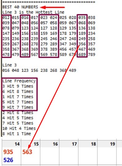 The Daily Report I will post tomorrow will show the frequency of the lines (hottest to coldest). You will see that most singles that hit come from the top 5 lines (40 numbers). The top 5 lines in NY are 1-3-5-6-9. For example: the 563 (356) that hit NY today is in line 9 (NEW YORK PAGE).