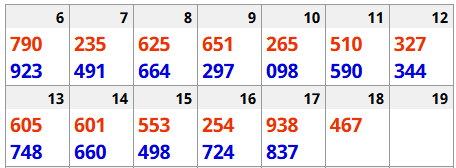 Cold or Due pairs don’t work in Tennessee (827 came from due pair 27 – but I posted that 7 days ago on Friday April 12–HERE). So I will try something different. I will get the 5 hottest digits from the hottest pairs in the last 70 drawings: I will wheel these to get 10 singles. I will see if any of these 10 numbers hits in the next few days. NOTE: The hottest pair is 16 but I will flip that and turn it into 19 (Rule 69).